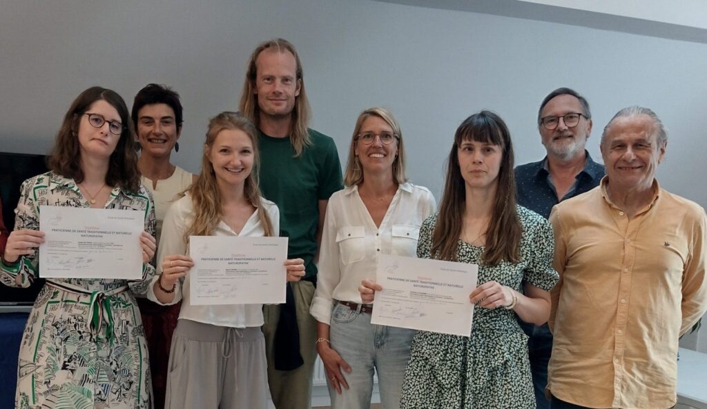 De nouveaux diplômés de l’École de Santé Holistiques C’est avec joie et fierté que nous avons célébré l’aboutissement du parcours de 5 nouveaux Naturopathe diplômés en Santé traditionnelle et naturelle – Naturopathes ! Tous se sont montrés novateurs dans leur travail de fin d’études. Leurs projets inspirants, fondés sur une vision globale de la santé et le respect des principes hippocratiques ont exploré des thèmes variés et complémentaires. Thèmes des travaux de fin d’étude « Apaiser ses Troubles du Spectre Autistique naturellement » avec Fanny Dexet « Génétique en naturopathie : et si l’étude des polymorphismes FUT2, MTHFR et DIO-II permettait un soin encore plus personnalisé ? » avec Sébastien Demoitié « La musique au service du mieux-être : approche naturopathique d’un outil vibratoire » avec Manon Greindl « Comprendre et accompagner l’hypersensibilité : l’intestin, une ressource oubliée » avec Sophie De Vreese « Sous le clair de lune. Quand les saisons intérieures murmurent au corps. La gynécologie émotionnelle » avec Charlotte Le Cozannet